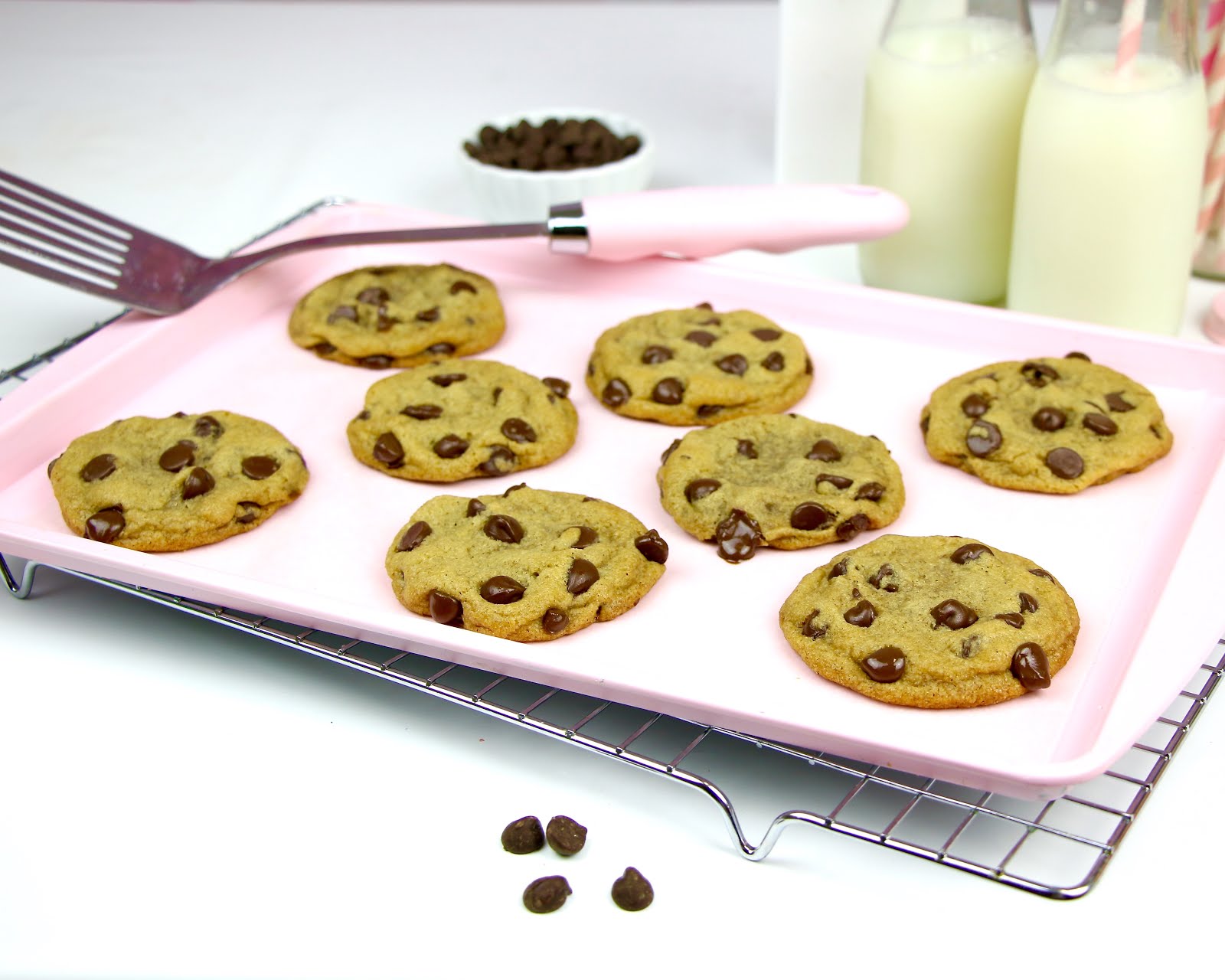 These perfect chocolate chip cookie have a sweet buttery flavor with a hint of vanilla. It has got a nice chewy, soft center with perfectly crisp edges, and is studded with classic semi-sweet chocolate chips.